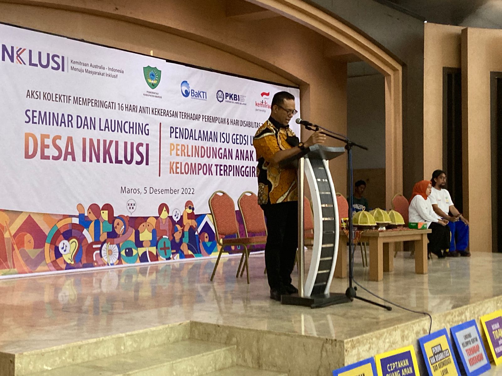 Pada Senin 05 Desember 2022 bertempat di Kantor Bupati Maros, Bupati Maros H.A.S Chaidir Syam mengukuhkan Pengurus Forum Disabilitas Kabupaten Maros (FORDISMA), sekaligus melakukan Pencanangan (launching) Desa Inklusi di Kabupaten Maros. FORDISMA adalah organisasi yang dibentuk atas inisiatif Dinas Sosial Kabupaten Maros yang didukung oleh Yayasan BaKTI (Bursa Pengetahuan Kawasan Timur Indonesia) dan SCF (Sulawesi Community Foundation). Yayasan BaKTI adalah salah satu mitra nasional Program INKLUSI (Kemitraan Australia-Indonesia Menuju Masyarakat Inklusif), sedangkan SCF adalah mitra dari Kemitraan dalam Program INKLUSI.