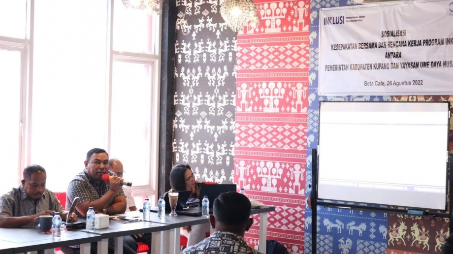 Sebagai tindak lanjut dari Penandatanganan Perjanjian Kerjasama antara Yayasan Ume Daya Nusantara (UDN) dan Bupati Kabupaten Kupang tentang Pelaksanaan Program INKLUSI (Kemitraan Austalia-Indonesia menuju masyarakat yang inklusif) di Kabupaten Kupang, maka pada Jumat 26 Agustus 2022 bertempat di Beta Cape Kupang, dilaksanakan Sosialisasi Penandatangan Perjanjian Kerjasama tersebut, sekaligus Penyusunan Desain Program INKLUSI.