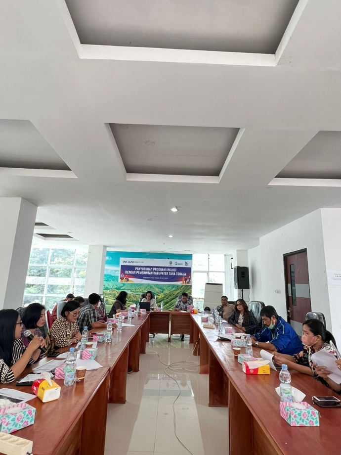 Penyusunan Program INKLUSI dengan Pemerintah Kabupaten Tana Toraja dihadiri oleh OPD (organisasi perangkat daerah) yang tugas pokok dan fungsinya berhubungan dengan Program INKLUSI, di antaranya Dinas Sosial, Dinas Kesehatan, Dinas Pemberdayaan Perempuan dan Perlindungan Anak, Dinas Tenaga Kerja, Dinas Koperasi, Dinas Pemberdayaan Masyarakat dan Lembang, serta dua anggota DPRD (Dewan Perwakilan Rakyat Daerah) Tana Toraja, yaitu Ketua Komisi 2 dan Ketua Bapemperda (Badan Pembentuk perda).