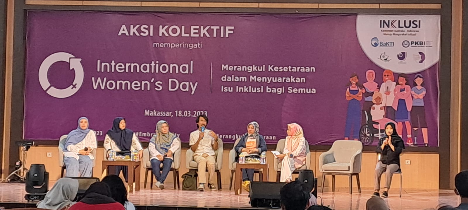 Yayasan BaKTI melalui Program INKLUSI (Kemitraan Australia-Indonesia Menuju Masyarakat Inklusif) bekerja sama dengan PKBI (Perkumpulan Keluarga Berencana Indonesia), YKPM (Yayasan Kajian dan Pemberdayaan Masyarakat), SCF (Sulawesi Community Foundation), AJI (Aliansi Jurnalis Indonesia) Makassardan RJP (Ruang Jurnalis Perempuan) Makassar, melaksanakan Peringatan Hari Perempuan Internasional (International Women’s Day, IWD) pada 18 Maret 2023 di Gedung Mulo, Makassar.