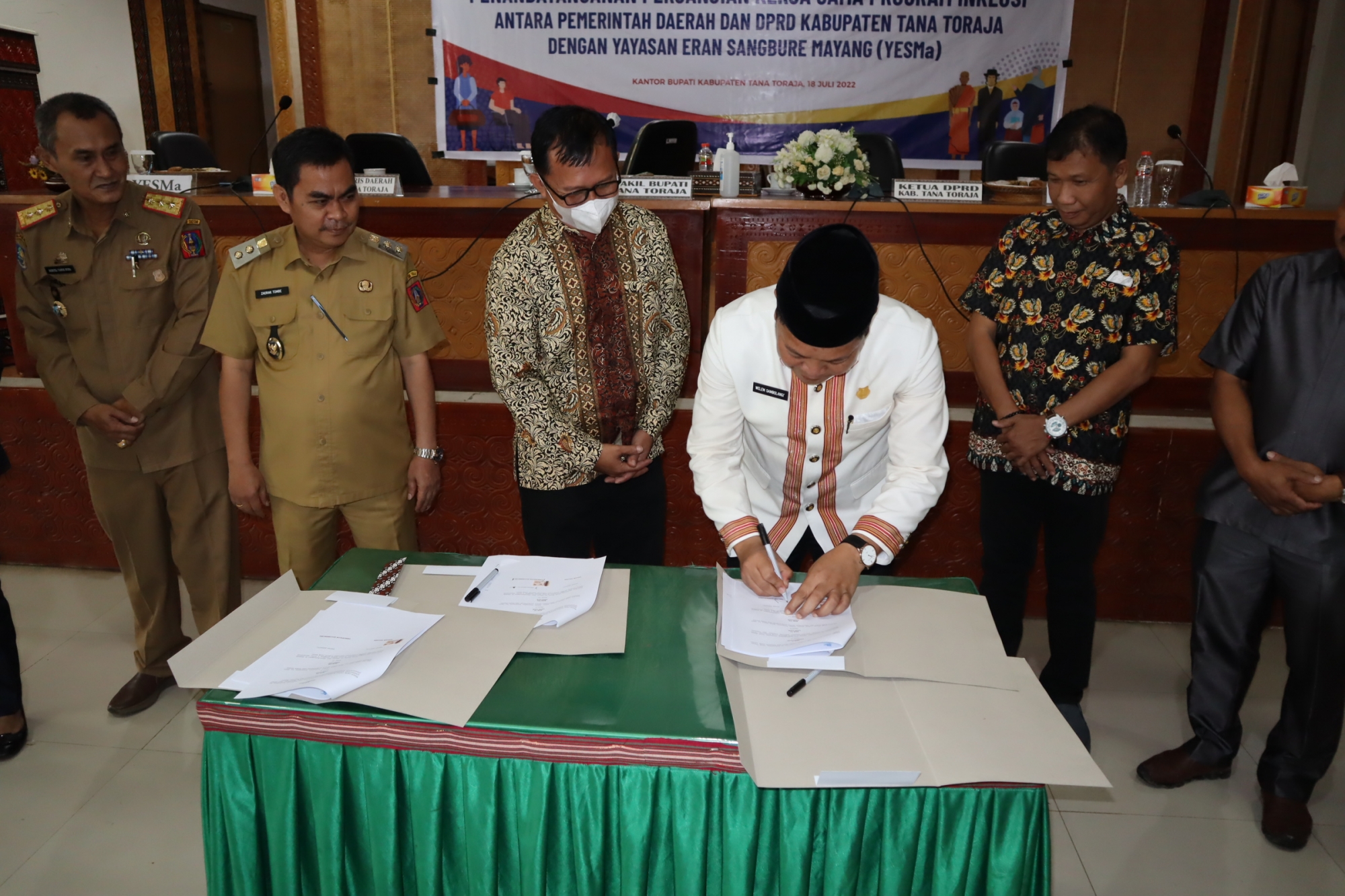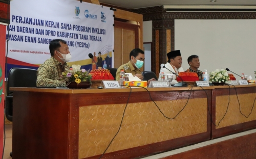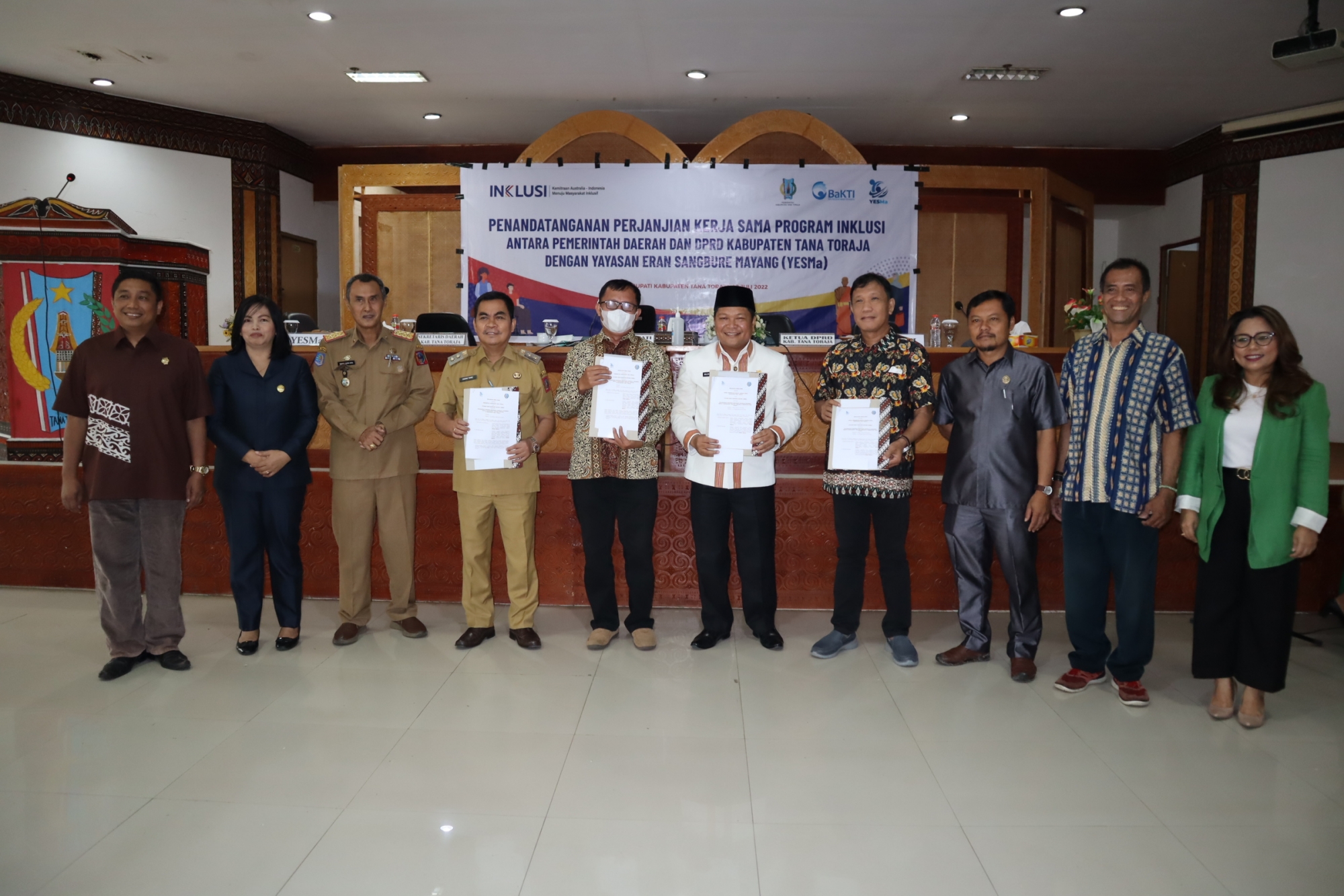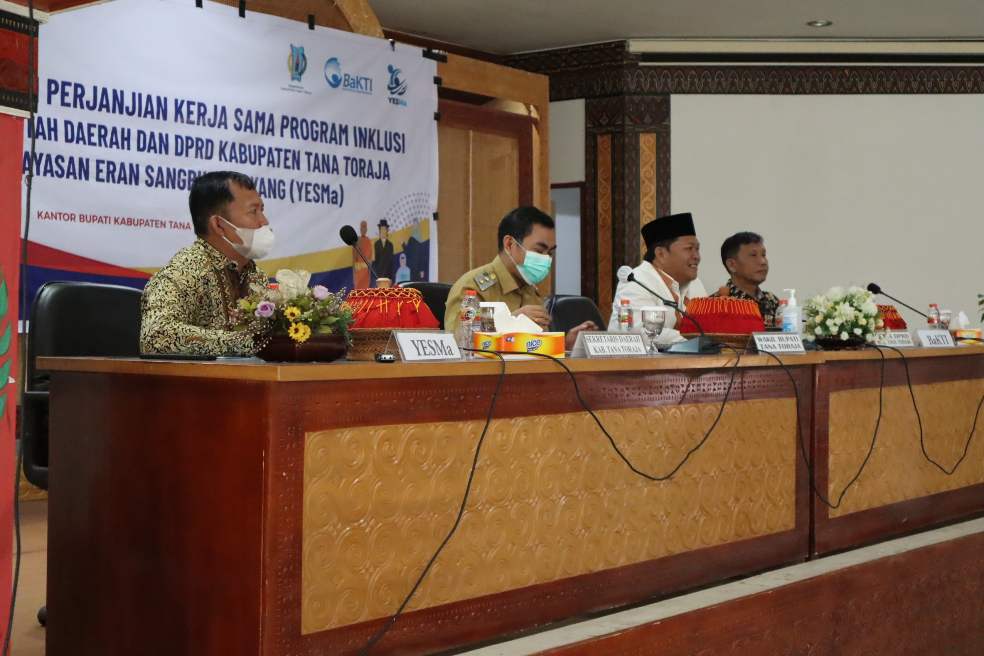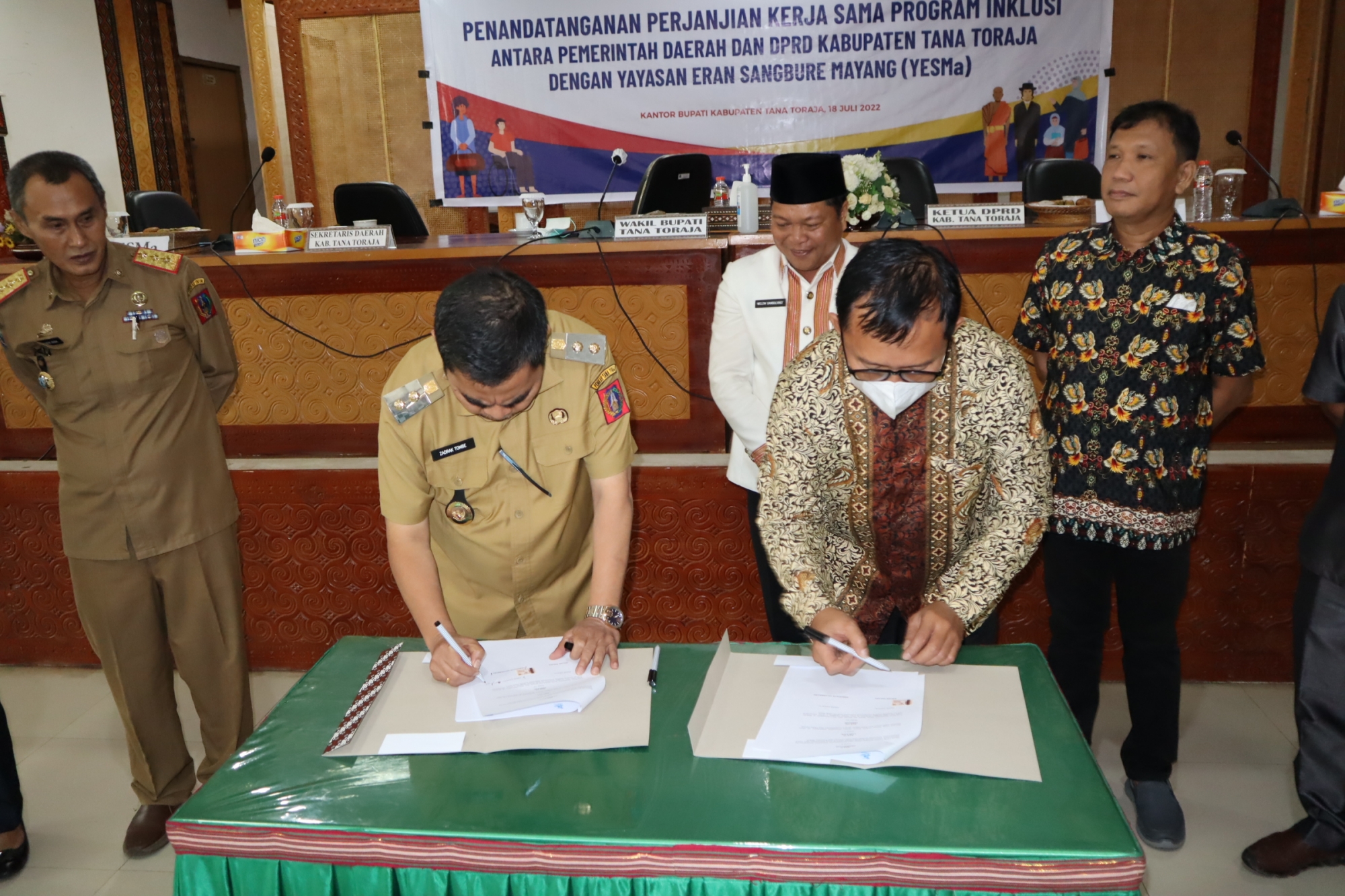 Pada 18 Juli 2022 Yayasan Eran Sangbure Mayang (YESMa) Tana Toraja melakukan Penandatanganan MOU (memorandum of understanding) atau Perjanjian Kerjasama dengan Pemerintah Kabupaten Tana Toraja dan DPRD (Dewan Perwakilan Rakyat Daerah) Tana Toraja, tentang Pelaksanaan Program Kemitraan Australia-Indonesia Menuju Masyarakat Inklusif atau Program INKLUSI di Kabupaten Tana Toraja. Penandatanganan Perjanjian Kerjasama YESMa dan Pemerintah Kabupaten Tana Toraja oleh Direktur YESMa Welem Salasa dan Wakil Bupati Tana Toraja Zadrakh Tombeng. Sedangkan Penandatanganan Perjanjian Kerjasama YESMa dan DPRD Tana Toraja oleh Direktur YESMa Welem Salasa dan Ketua DPRD Tana Toraja Welem Sambolangi. Penandatanganan MOU ini dihadiri oleh pimpinan DPRD Tana Toraja, kepala OPD (Organisasi Perangkat Daerah) se Kabupaten Tana Toraja, LSM (Lembaga Swadaya Masyarakat), camat, dan kepala lembang.