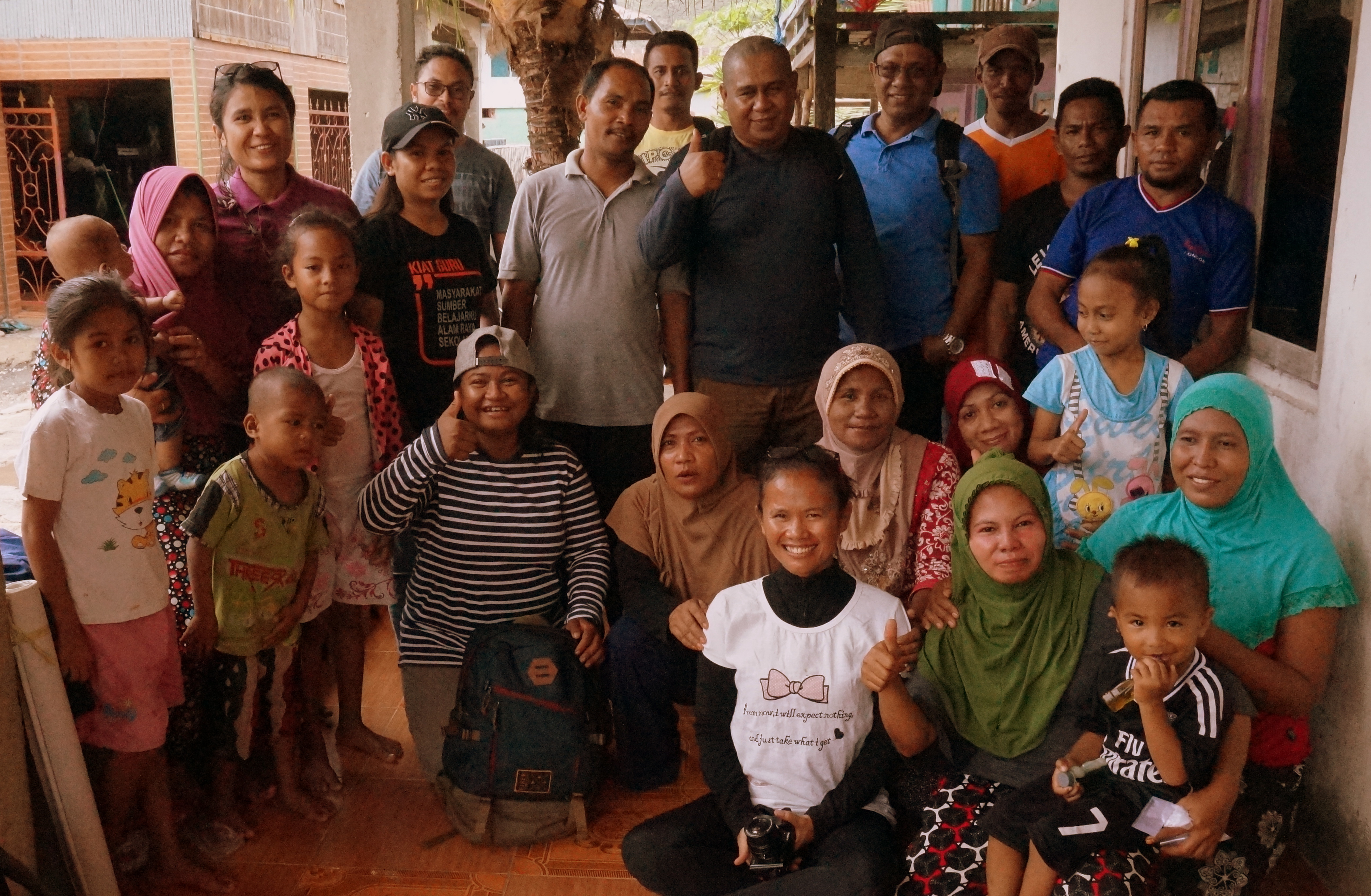 Rombongan yang berjumlah sembilan orang berjalan beriringan menyusuri setapak jalan beton yang juga berfungsi sebagai pembatas halaman warga. Kunjungan diarahkan ke sekolah yang berjarak sekira 300 meter dari bibir pantai.