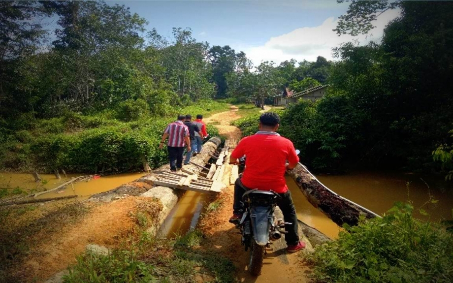 Perjalanan pun dilanjutkan, namun belum setengah perjalanan tiba-tiba menemukan tantangan yang lebih menegangkan yaitu ketika menyeberangi sungai yang jembatannya tidak layak pakai lagi, di mana jembatan tersebut hanya berupa bentangan kayu bulat dan sudah termakan usia yang harus dilalui dengan penuh kehati-hatian. Usai menyeberangi sungai, rintangan lain tak terelakkan datang menghampiri, salah satu motor yang ditumpangi mogok sehingga tidak dapat melanjutkan perjalanan, sedangkan dua motor lainnya terus menerobos sampai ke lokasi tujuan.
