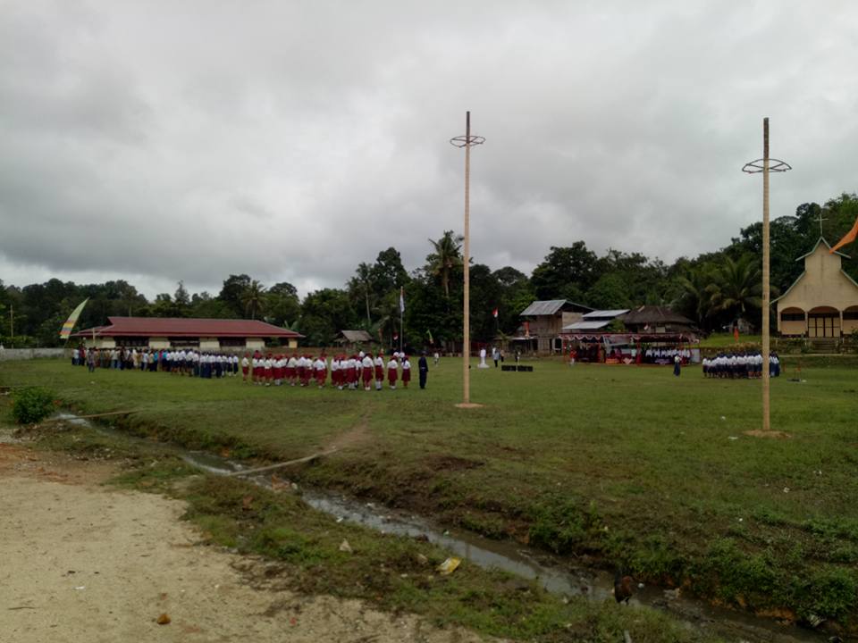Sebagai bagian dari upaya pengentasan kemiskinan, pemerintah pusat hadir di tengah-tengah desa kita melalui TNP2K (Tim Nasional Percepatan Penanggulangan Kemiskinan) dengan Program KIAT Guru, ini sebuah kesyukuran buat kita semua mendapat perhatian dari pemerintah pusat untuk bersama-sama memperbaiki pendidikan dan sudah kita melihat perubahan-perubahannya, namun perubahan sesungguhnya akan kita rasakan 10 sampai 20 tahun ke depan, sebab ini tidak instan. Jadi, saya berharap mari kita sama-sama perbaiki yang belum baik, dan kita ciptakan kerja sama yang baik untuk mendorong pendidikan di desa kita agar menghasilkan generasi emas dan mungkin sebagian dari mereka inilah, bisa jadi ke depan menggantikan saya sebagai inspektur upacara. Kerjasama yang diharapkan caranya sangat sederhana, orang tua peduli dengan pendidikan anakanya, pihak sekolah memberikan layanan terbaik dan pemerintah desa memberikan dukungan tanpa membeda-bedakan. Saya kira kalau ini terbangun dengan baik, desa kita akan lebih maju pendidikannya. Tutup Inspektur upacara.