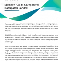 Pendidikan Dasar di Pelosok Indonesia: Hasil Survei Kalimantan Barat dan Nusa Tenggara Timur - Sejak tahun 2016, Bank Dunia mendukung Pemerintah Indonesia untuk meningkatkan kinerja guru dan partisipasi masyarakat dalam pendidikan melalui KIAT Guru. KIAT Guru (Kinerja dan Akuntabilitas Guru) dilaksanakan di lima kabupaten, yaitu Ketapang, Landak, dan Sintang (di Provinsi Kalimantan Barat), serta Manggarai Barat dan Manggarai Timur (di Provinsi Nusa Tenggara Timur). |
