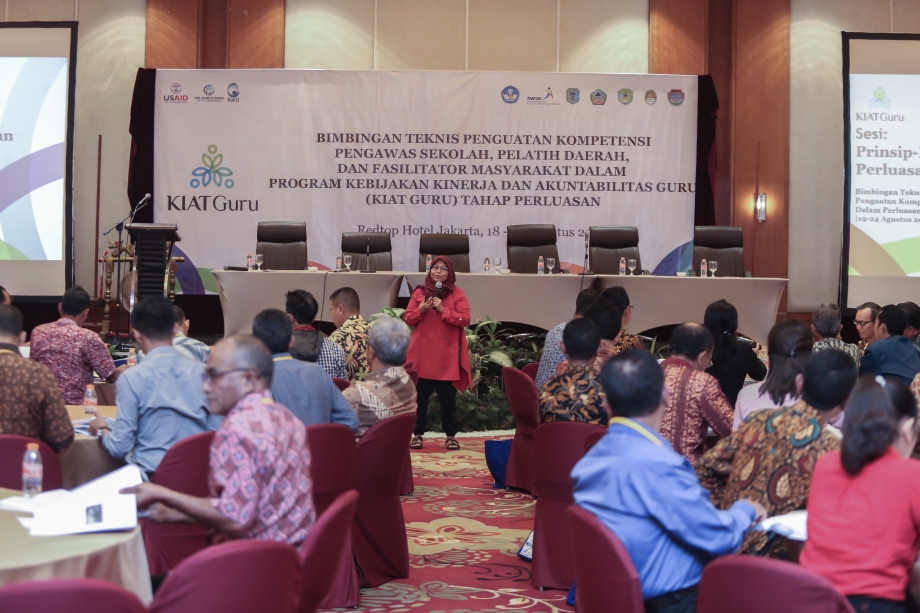 Untuk memperkuat kapasitas Pemerintah Daerah dalam perluasan Program KIAT Guru, pada tanggal 19-24 Agustus 2019, Kemdikbud dan TNP2K menyelenggarakan Bimbingan Teknis (Bimtek) yang diikuti oleh 55 pengawas sekolah dan 30 pelatih daerah dan fasilitator masyarakat dari lima kabupaten. Pada Bimtek ini, lima pengawas sekolah yang dianggap memiliki pemahaman terbaik tentang Program KIAT Guru didapuk sebagai pelatih nasional. Dra. Reni Yunus MM, Kepala Sub Direktorat Pengembangan Kinerja dan Karir, Direktorat Pembinaan Tenaga Kependidikan dalam sambutannya menyampaikan “Pengawas sekolah adalah agen perubahan ‘agent of change‘ pengawas akan melakukan supervisi dan pembinaan agar berdampak pada meningkatkan mutu pendidikan anak-anak Indonesia”.