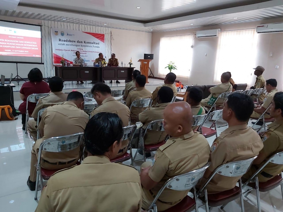 Roadshow dan Konsultasi yang berlangsung pada hari Selasa, 17 September 2019 di Aula Kantor Bappeda Kabupaten Nabire sendiri dihadiri oleh La Halim S.Sos, Asisten I Sekretaris Daerah mewakili Bupati Nabire. Selain itu hadir pula jajaran OPD mulai dari Badan Perencanaan pembangunan daerah (Bappeda), Dinas Pemberdayaan Masyarakat Kampung (DPMK), Dinas Pendidikan, Dinas Kesehatan, Dinas Kependudukan dan Pencatatan Sipil, Dinas Sosial, dan Dinas Komunikasi dan Informatika. Dalam roadshow ini Para peserta memperoleh informasi mengenai pelaksanaan program tahap sebelumnya yaitu penguatan kapasitas dan tata kelola unit layanan dan masyarakat kemudian apa yang akan dilakukan ke depannya yaitu sinergitas masyarakat dengan unit layanan dasar kesehatan dan pendidikan. Kemudian dilanjutkan dengan pembangunan komitmen dari para OPD terkait sebagai acuan dalam proses membangun sinergitas tersebut. Komitmen yang dibuat mencakup orang-orang atau tim teknis, regulasi yang mendukung keberlanjutan program, serta dukungan pembiayaan untuk operasional berkelanjutan di wilayah program.