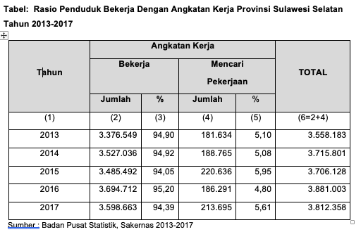 BPS Sulawesi Selatan (2013-2017). Data Susenas,” sector Ketenagakerjaan”.