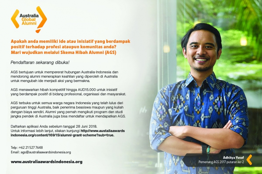 The AGS is open to all Indonesian nationals who have graduated from a recognised Australian tertiary institution, including those that self-funded their study in Australia. It is also open to alumni of short-term study or programs in Australia.