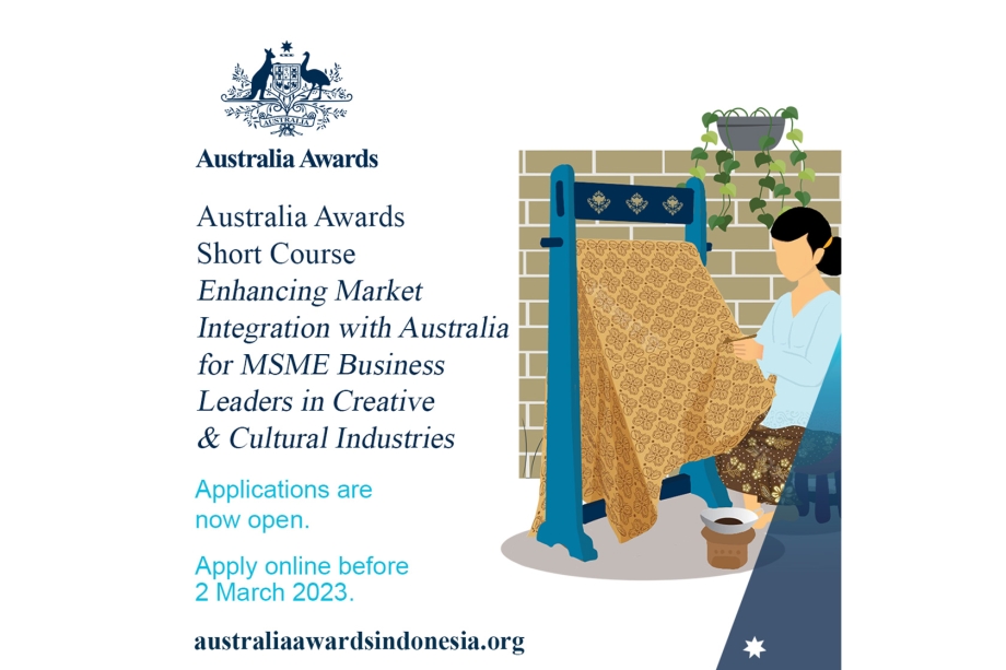 This course aims to strengthen the capacity of private sector MSME business leaders, including women entrepreneurs, in creative and cultural industries to better engage and integrate with the Australian market, creating partnership opportunities and increasing two-way trade in line with the Indonesia-Australia Comprehensive Economic Partnership Agreement (IA-CEPA), the work of the IA-CEPA Katalis program, and Partnerships for Recovery.