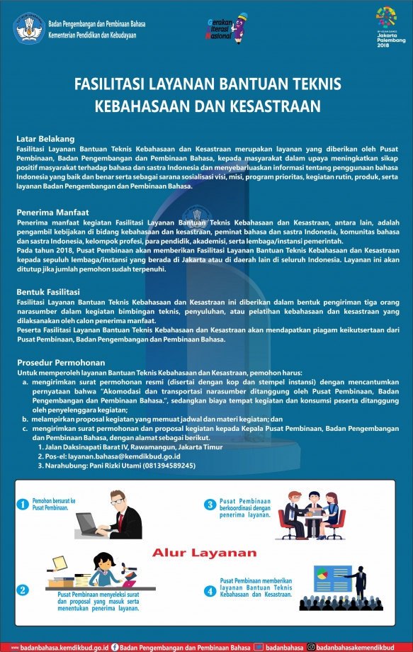 Submitted by admin on Thu, 24/05/2018 - 12:56 Sumber: http://badanbahasa.kemdikbud.go.id/lamanbahasa/berita/2565/fasilitasi-layanan-bantuan-teknis KerjasamaNasional Log in to post comments
