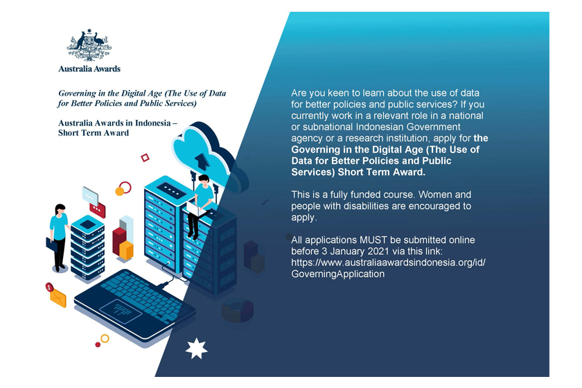 Are you keen to learn about the use of data for better policies and public services? If you currently work in a relevant role in a national or subnational Indonesian Government agency or a research institution, apply for the Governing in the Digital Age (The Use of Data for Better Policies and Public Services) Short Term Award.