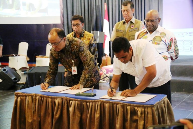 Penandatanganan Nota Kesepahaman untuk Pembangunan Rendah Karbon antara Pemerintah Provinsi Papua diwakili Sekda Hery Dosinaen dan BAPPENAS yang diwakili oleh Deputi Menteri Bidang Kemaritiman dan Sumber Daya Alam, Dr. Ir. Arifin Rudiyanto, M.Sc.