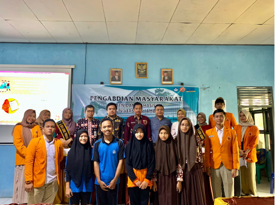 Salah satu masalah yang masih banyak terjadi dari segi kesehatan, sosial, dan psikologi adalah terkait tingginya angka penikahan dini berdasarkan data BPS, Provinsi Jambi menempati sepuluh besar presentase perkawinan usia muda di Indonesia yaitu sebesar 32,37% dengan kabupaten tertinggi adalah Kabupaten Muaro Jambi yaitu sebesar 32,36%. Dalam mencegah permasalahan remaja dapat dimulai dengan penguatan karakter diri remaja serta penguatan ketahanan keluarga salah satunya adalah dengan memberdayakan remaja melalui PIK-R (Pusat Konseling dan Informasi Remaja) yang merupakan wadah guna memberikan pelayanan informasi dan konseling dalam penyiapan kehidupan berkeluarga, pendewasaan usia perkawinan, keterampilan hidup, dan pelayanan konseling pra nikah, serta kegiatan penunjang lainnya bagi para remaja. Kegiatan pengabdian pelaksanaannya dilaksanakan di SMAN 1 Muaro Jambi pada Kamis (8/6/23).