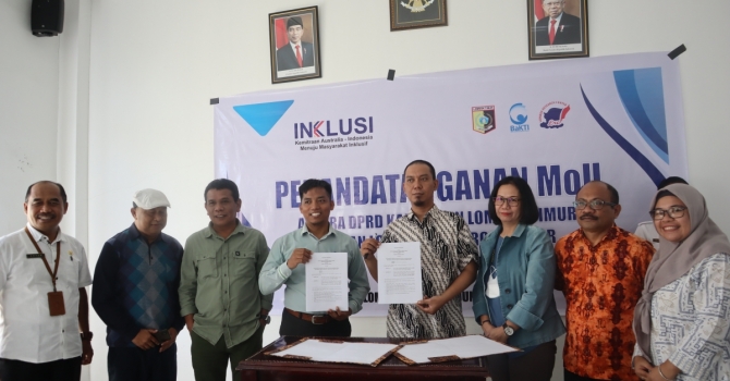 Memulai Program Kemitraan Australia-Indonesia Menuju Masyarakat Inklusif (INKLUSI) di Kabupaten Lombok Timur, Lombok Research Center (LRC) melakukan Penandatanganan Perjanjian Kerjasama/MOU dengan DPRD Kabupaten Lombok Timur, tentang Pelaksanaan Program Kemitraan Australia-Indonesia Menuju Masyarakat Inklusif atau Program INKLUSI di Kabupaten Lombok Timur.