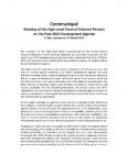 Bali Communique berisi buah pikiran panelis, hasil diskusi dan hasil dari konsultasi-konsultasi yang terjadi di seluruh dunia (the 4th High-Level Panel Meeting, Bali, 24-27 March 2013). Ini akan menjadi dasar pembuatan laporan yang akan diserahkan ke SekJen bulan depan.