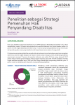 Risalah kebijakan ini merekomendasikan sejumlah Langkah yang dapat dilakukan untuk menjadikan penelitian sebagai strategi utama dalam upaya pemenuhan hak penyandang disabilitas yang telah dijamin oleh Undang-Undang Nomor 8 tahun 2016 tentang Penyandang Disabilitas. Penelitian memberi ruang partisipasi bagi penyandang disabilitas karena suara, pengalaman diskriminasi, dan perampasan atas hak penyandang disabilitas dapat dikumpulkan, ditelaah, dan dijadikan dasar untuk mencarikan solusi dalam bentuk kebijakan.