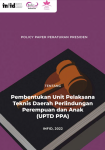 Temuan-temuan serta rekomendasi terkait UPTD PPA dalam riset tersebut kemudian dituangkan dalam Kertas Kebijakan serta Konsepsi berikut, yang mana menjelaskan urgensi dari pemerataan UPTD PPA, sistem UPTD PPA yang diusulkan, serta juga memberikan rekomendasi-rekomendasi kepada berbagai pemangku kepentingan agar dapat menunjang jalannya UPTD PPA di daerah masing-masing secara maksimal.