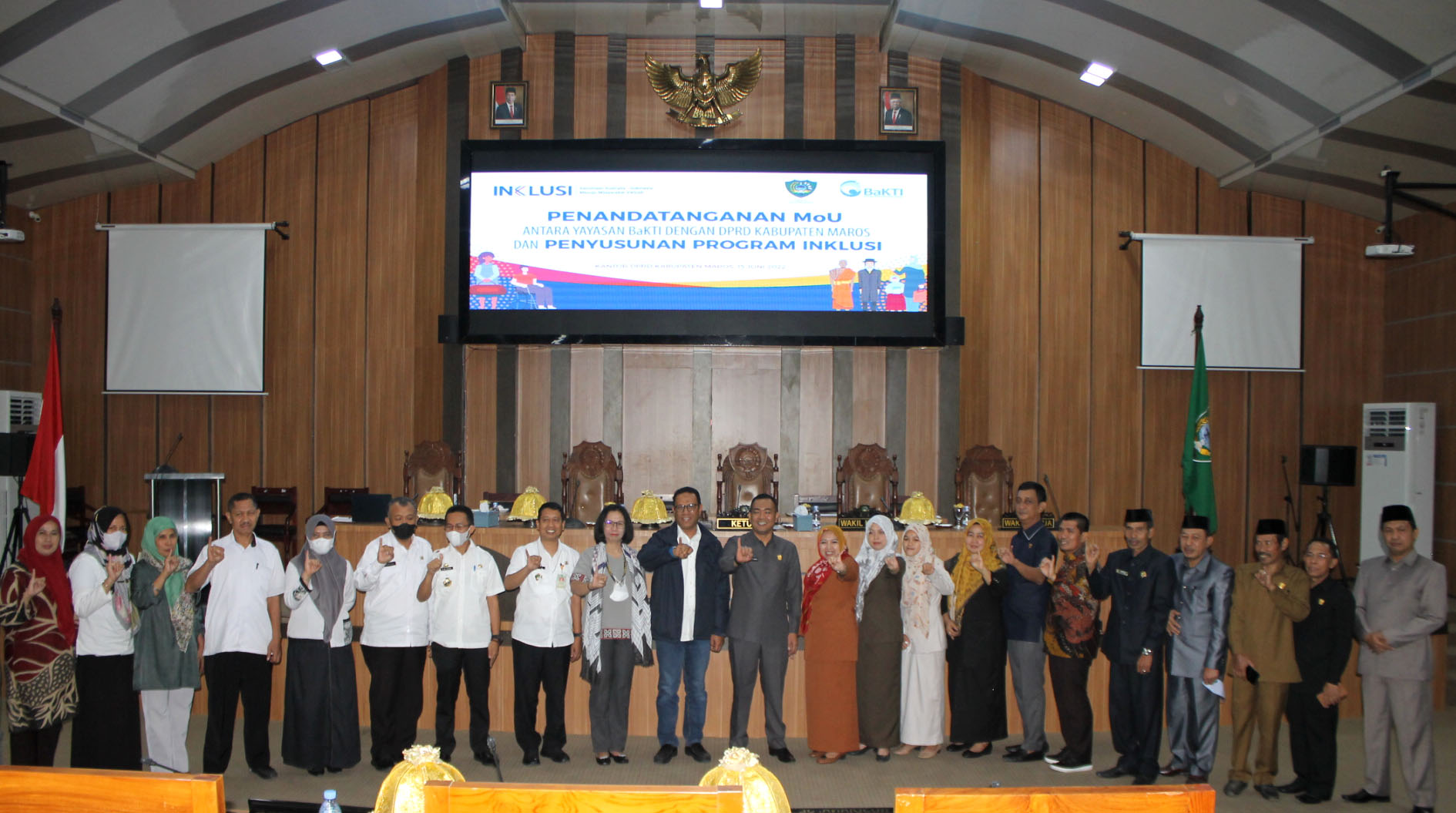 Setelah penandatanganan Perjanjian Kerjasama/MOU dengan Pemerintah Kabupaten Maros pada 14 Juni 2022, Yayasan BaKTI Kembali melakukan penandatanganan MOU dengan Dewan Perwakilan Rakyat Daerah (DPRD) Kabupaten Maros tentang Pelaksanaan Program Kemitraan Australia-Indonesia Menuju Masyarakat Inklusif atau Program INKLUSI pada 15 Juni 2022. Penandatanganan MOU dilakukan oleh Ketua DPRD Kabupaten Maros, H. Andi Patarai Amir dan Direktur Eksekutif Yayasan BaKTI, Muhammad Yusran Laitupa di Ruang Rapat Paripurna Kantor DPRD Maros.
