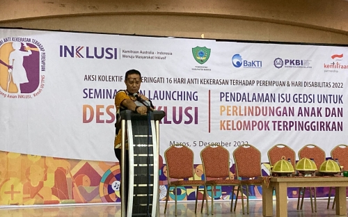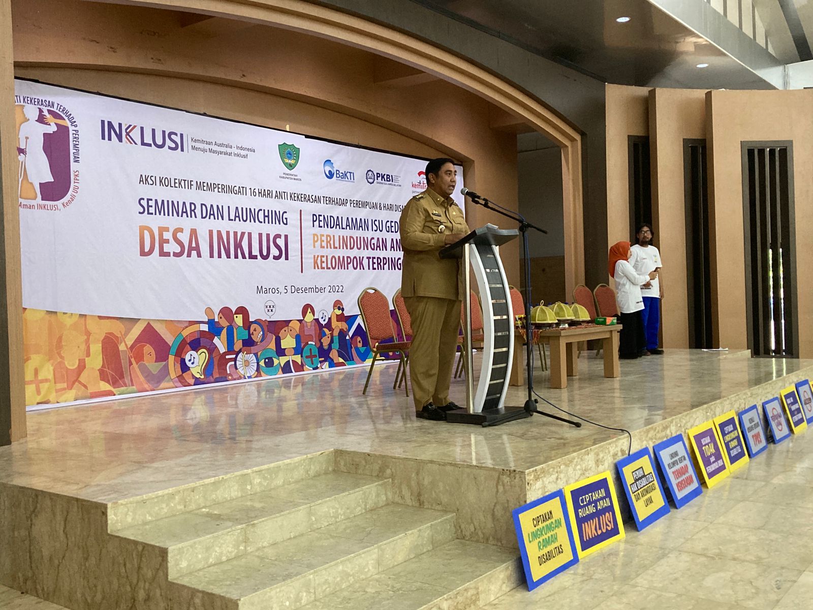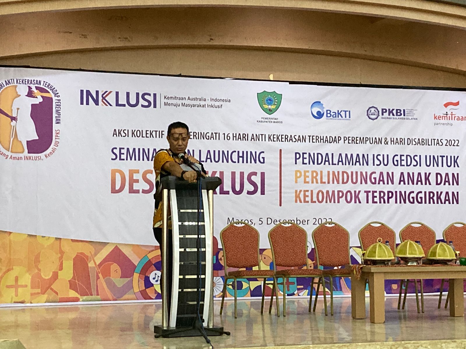 Pada Senin 05 Desember 2022 bertempat di Kantor Bupati Maros, Bupati Maros H.A.S Chaidir Syam mengukuhkan Pengurus Forum Disabilitas Kabupaten Maros (FORDISMA), sekaligus melakukan Pencanangan (launching) Desa Inklusi di Kabupaten Maros. FORDISMA adalah organisasi yang dibentuk atas inisiatif Dinas Sosial Kabupaten Maros yang didukung oleh Yayasan BaKTI (Bursa Pengetahuan Kawasan Timur Indonesia) dan SCF (Sulawesi Community Foundation). Yayasan BaKTI adalah salah satu mitra nasional Program INKLUSI (Kemitraan Australia-Indonesia Menuju Masyarakat Inklusif), sedangkan SCF adalah mitra dari Kemitraan dalam Program INKLUSI.