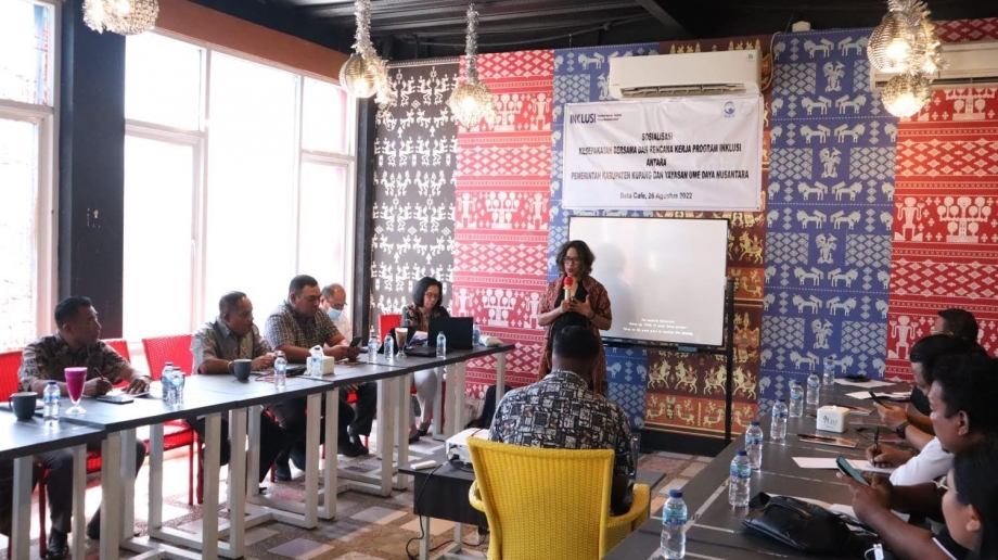 Sebagai tindak lanjut dari Penandatanganan Perjanjian Kerjasama antara Yayasan Ume Daya Nusantara (UDN) dan Bupati Kabupaten Kupang tentang Pelaksanaan Program INKLUSI (Kemitraan Austalia-Indonesia menuju masyarakat yang inklusif) di Kabupaten Kupang, maka pada Jumat 26 Agustus 2022 bertempat di Beta Cape Kupang, dilaksanakan Sosialisasi Penandatangan Perjanjian Kerjasama tersebut, sekaligus Penyusunan Desain Program INKLUSI.