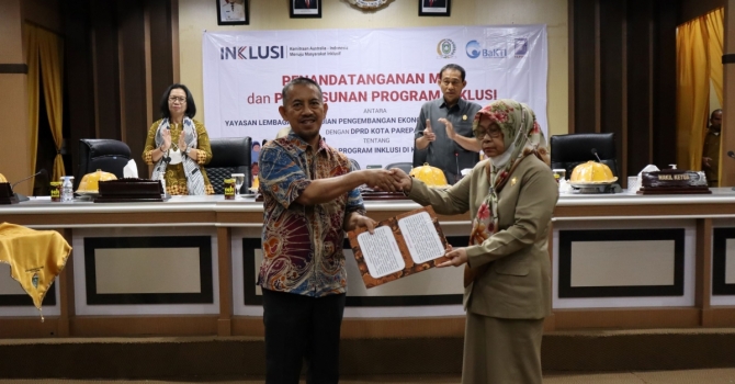 Yayasan Lembaga Pengkajian Pengembangan Ekonomi dan Masyarakat (YLP2EM) melakukan Penandatanganan Perjanjian Kerjasama dengan Dewan Perwakilan Rakyat Daerah (DPRD) Kota Parepare, tentang Pelaksanaan Program Kemitraan Australia-Indonesia Menuju Masyarakat Inklusif atau Program INKLUSI. Penandatanganan Perjanjian Kerjasama tersebut sebagai penanda dimulainya Program INKLUSI di Kota Parepare. YLP2EM Parepare adalah mitra Yayasan BaKTI untuk pelaksanaan Program INKLUSI di Kota Parepare.