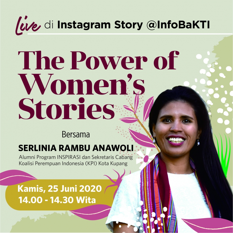 5. Tanggal 25 Juni 2020, dengan narasumber Serlinia Rambu Anawoli, alumni program INSPIRASI 2018 dan Sekretaris KPI – Koalisi Perempuan Indonesia Cabang Kota Kupang. Serly berbagi pengalaman di Selandia Baru belajar isu perempuan dan gender justice bahkan diberikan kesempatan untuk berbicara tentang isu keadilan gender di NTT dalam sebuah pertemuan perempuan Selandia Baru cabang Auckland. Serly juga bercerita tentang semangat perempuan lewat kumpulan cerita 10 orang perempuan inspiratif di Kupang dan Timor Tengah Selatan mengenai aktivitas mereka sehari-hari di rumah, komunitas dimana ia bergabung dan bagaimana mereka terlibat dalam gerakan-gerakan untuk sebuah perubahan sosial.