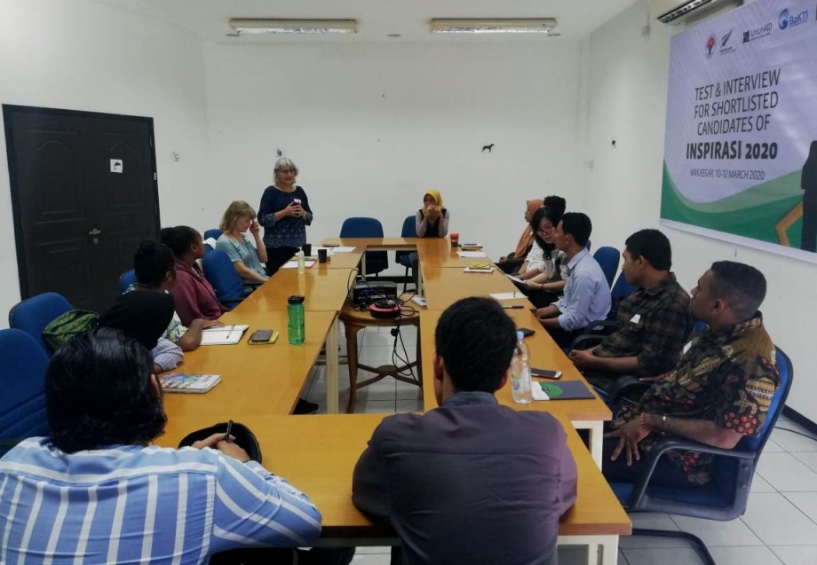 Tim panel interview untuk seleksi Program INSPIRASI 2020 di Kota Makassar terdiri dari Laila Harre (Program Manager) dan Caroline Novak (Program Support Manager) dari UnionAID, Zusanna Gosal dan Sherly Heumasse dari BaKTI, serta Andi Arifayani (alumni INSPIRASI tahun 2018 dari Sulawesi Selatan). 4 orang alumni lainnya aktif terlibat dalam proses group exercise dan presentasi – sharing pengalaman alumni selama belajar di New Zealand selama 6 bulan yakni Fauzan Azizie dan Rezky Pratiwi (alumni INSPIRASI tahun 2018) dan 2 orang alumni INSPIRASI tahun 2019 yakni Zulkhaidir Purwanto dan Nur Syarif Ramadhan. Sedangkan seleksi di Kota Mataram, tim panelnya sama dengan tim panel di Kota Makassar. Hadir pula alumni INSPIRASI tahun 2019 Muh. Syukron Ansyori dari AMAN Sumbawa yang membagikan pengalamannya selama belajar di New Zealand dan membantu proses group exercise.