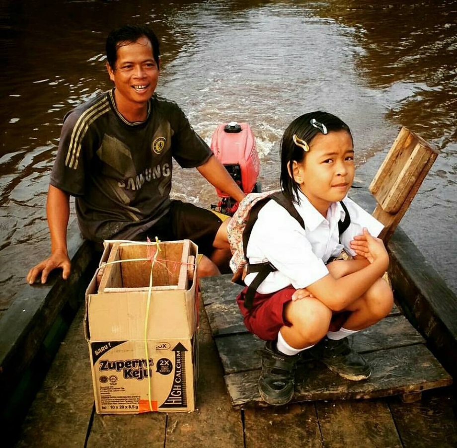 Sampan kecil yang di naiki oleh sekitar 12 anak sekali perjalan adalah teman setia menyeberang sungai yang mengantarkan mereka untuk bisa segera sampai di sekolah agar tidak terlambat dan bisa belajar.
