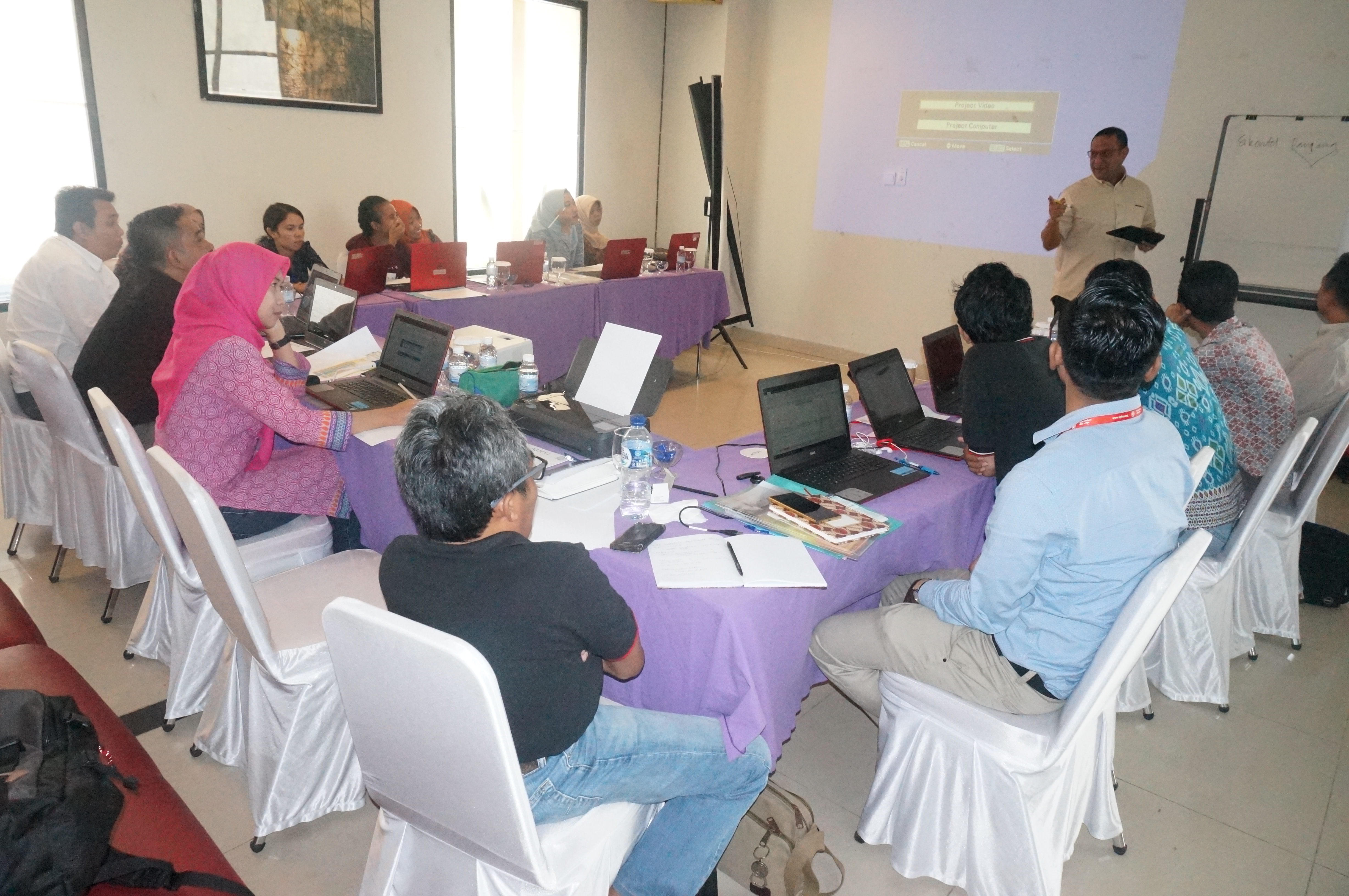 Setiba di Hotel, pada tanggal 28 Maret 2017 setelah check in dan menuju kamar untuk meletakkan barang-barang bawaan, saya kemudian menemui kawan-kawan lainnya yang telah tiba sebelumnya, dan saya kaget-benar saja, saat bertemu teman-teman yang lain, semua sedang sibuk dengan laptop masing-masing dikejar deadline laporan. Wah, tidak bisa shopping nih…..?.