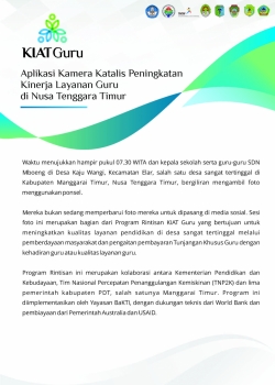 KIAT Kamera merupakan bagian dari Program Rintisan KIAT Guru yang bertujuan untuk meningkatkan kualitas layanan pendidikan di desa sangat tertinggal melalui pemberdayaan masyarakat dan pengaitan pembayaran Tunjangan Khusus Guru dengan kehadiran guru atau kualitas layanan guru.