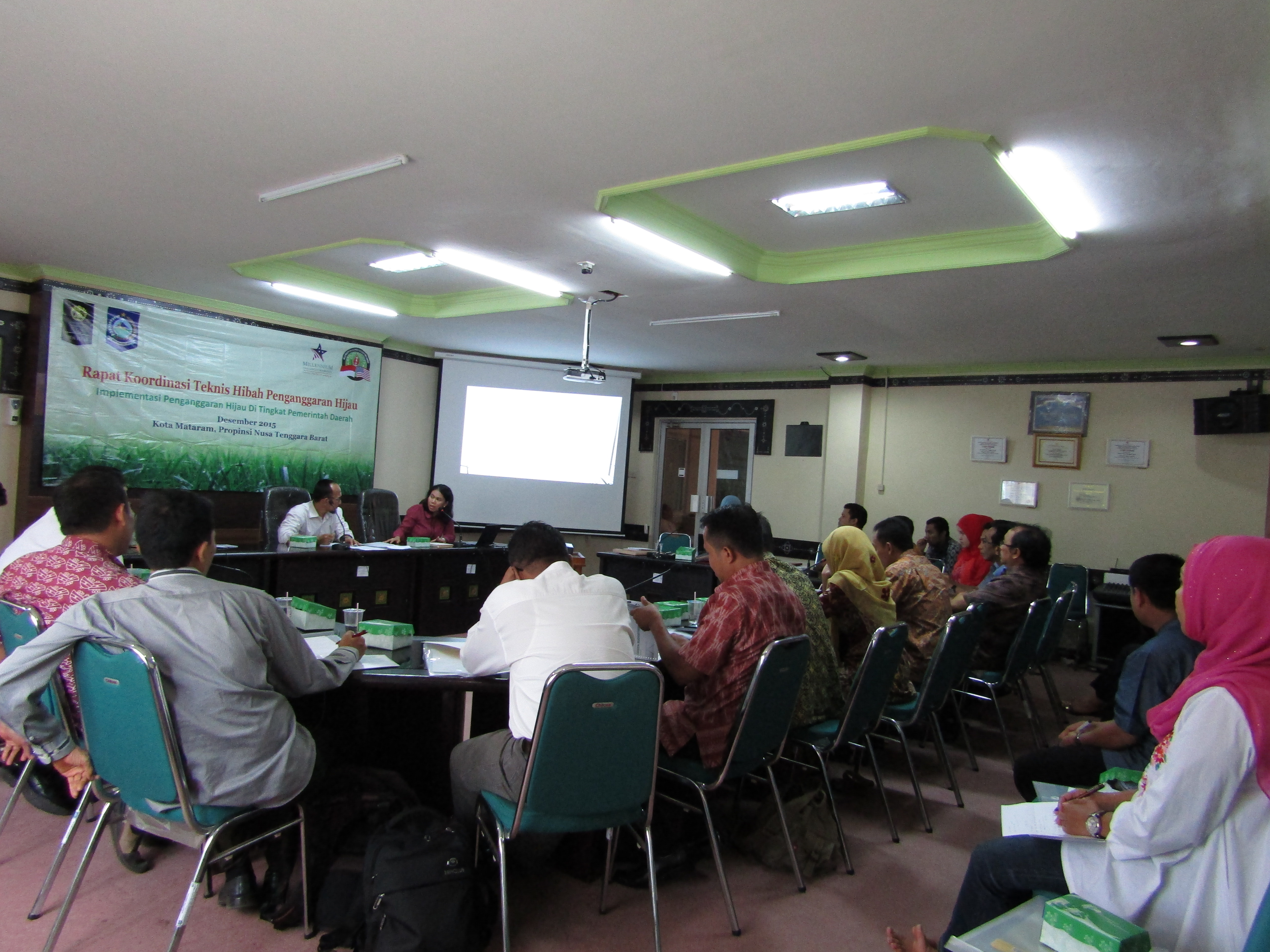 Di Provinsi Nusa Tenggara Barat, telah dikeluarkan Peraturan Gubernur (Pergub) No. 12 Tahun 2012 Tentang Rencana Aksi Daerah Penurunan Emisi Gas Rumah Kaca (RAD GRK) Provinsi Nusa Tenggara Barat. Ada 6 Satuan Kerja Perangkat Daerah (SKPD) yang bertanggung jawab terhadap RAD GRK Nusa Tenggara Barat dibawah koordinasi Bappeda Provinsi yaitu : SKPD berbasis lahan (Dinas Kehutanan, Dinas Pertanian, Dinas Peternakan dan Dinas Perkebunan), SKPD berbasis energi dan transportasi (Dinas Pertambangan dan Energi dan Dinas Perhubungan) serta SKPD berbasis Limbah (Badan Lingkungan Hidup Daerah dan Dinas Pekerjaan Umum). Selanjutnya RAD GRK akan disinkorinasasikan dengan dokumen perencanaan daerah RPJMD baik dalam hal perencanaan, pelaksanaan program dan penganggaran sehingga berkontribusi pada pengurangan kemiskinan di NTB dengan tetap memperhatikan pada pembangunan yang ramah lingkungan. Lembaga Penyelidikan Ekonomi dan Masyarakat – Fakultas Ekonomi dan Bisnis Universitas Indonesia (LPEM FEB UI) adalah penerima hibah tunggal Pengetahuan Hijau yang merupakan bagian dari proyek Kemakmuran Hijau , yang bekerjasama dengan penelitian lokal dari Universitas Jambi, Universitas Mataram, dan Universitas Nusa Cendana untuk bersama-sama menjalankan program Green Budgeting (Penganggaran Hijau). Untuk itu, pada tanggal 16 Desember 2015 bertempat di Aula Kantor Bappeda Nusa Tenggara Barat, tengah berlangsug Rapat Koordinasi Teknis Hibah Penganggaran Hijau - Implementasi Penganggaran Hijau di tingkat Pemerintah Daerah. Kegiatan ini bertujuan untuk melihat bagaimana pelaksanaan penganggaran hijau di tingkat daerah. Secara khusus bertujuan untuk ; konfirmasi data dan informasi terkait perencanaan, implementasi, evaluasi RAD GRK, mendapatkan masukan mengenai bagaimana agar pelaksanaan RAD GRK secara khusus dapat berjalan efektif dan sejalan dengan tujuan pembangunan daerah, serta mendapatkan masukan bagaimana penganggaran hijau dapat dilaksanakan di level provinsi maupun kabupaten. Kegiatan ini dihadiri perwakilan dari DPRD Provinsi, Bappeda Provinsi, Akademisi, LSM, Dinas Peternakan dan Dinas PU dan dibuka oleh Bapak Samsudin (Kabid Fisik dan Prasarana Bappeda NTB/Tim Koordinasi Program MCA-Indonesia)