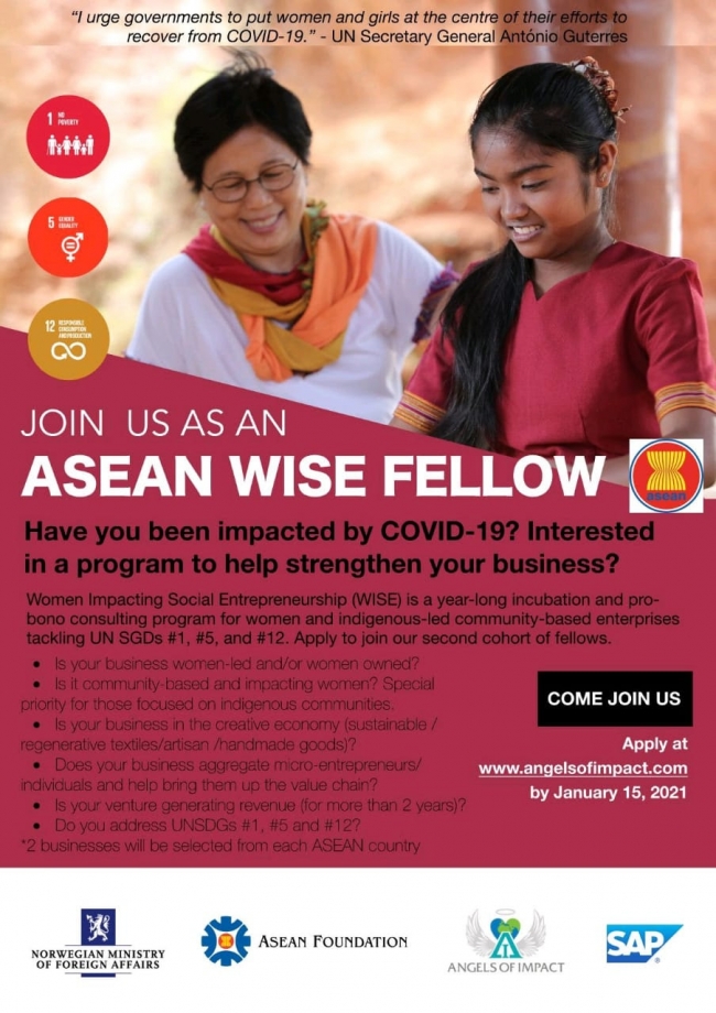 For more information: http://www.angelsofimpact.com/asean-wise-fellowship.html