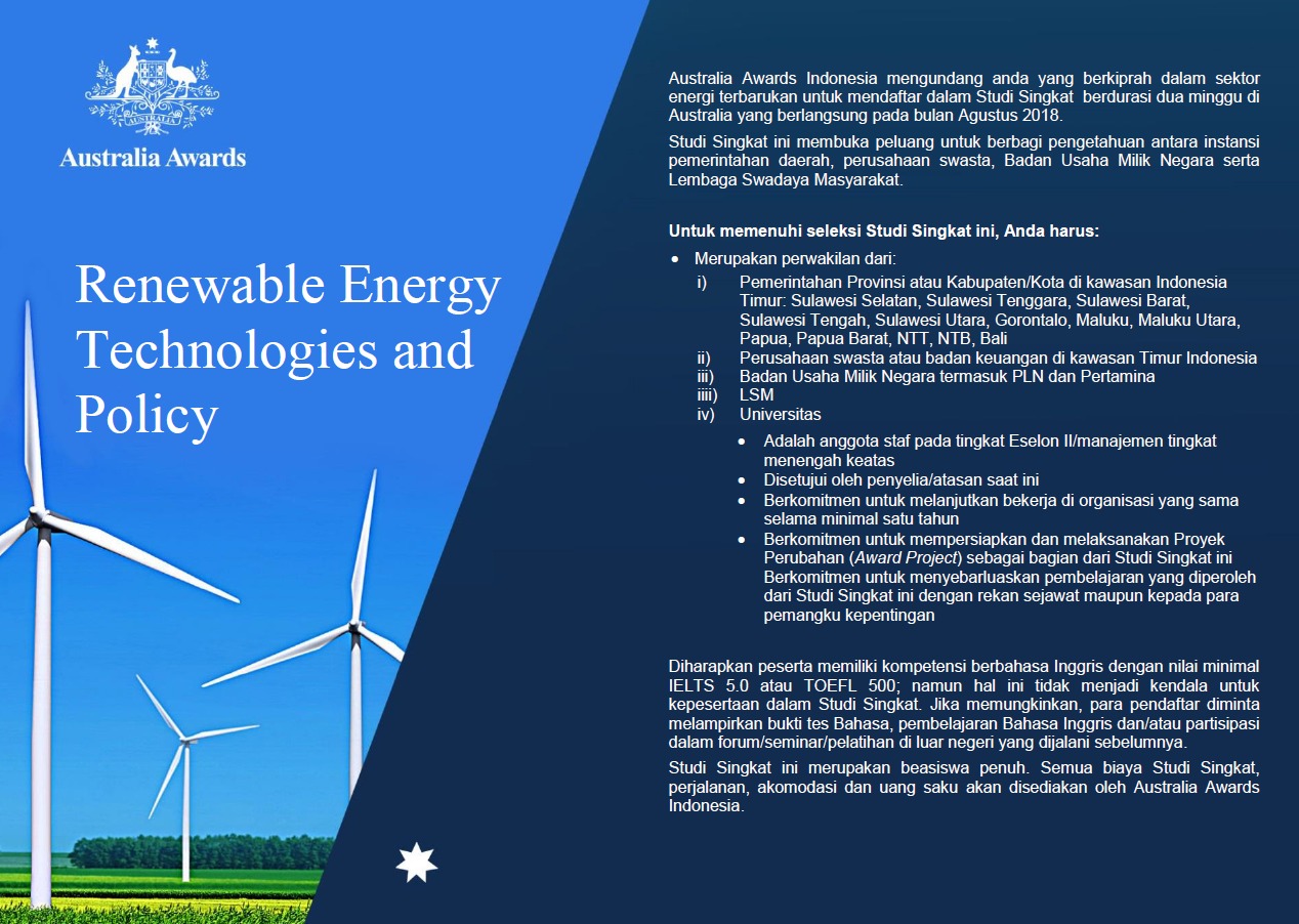 BEASISWA SHORT COURSE AUSTRALIA AWARDS - RENEWABLE ENERGY TECHNOLOGIES AND POLICY