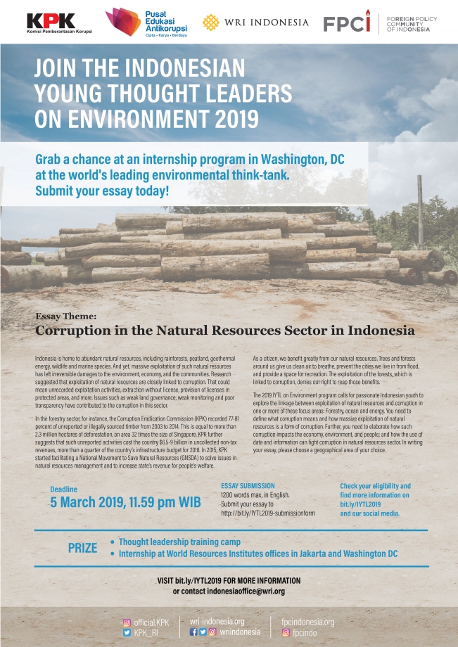 The program is organized by the World Resources Institute Indonesia (WRI Indonesia) in partnership with the Foreign Policy Community of Indonesia (FPCI) since 2015. Starting this year, this program is also supported by the Corruption Eradication Commission (KPK)'s Anti-corruption Learning Center (ACLC).