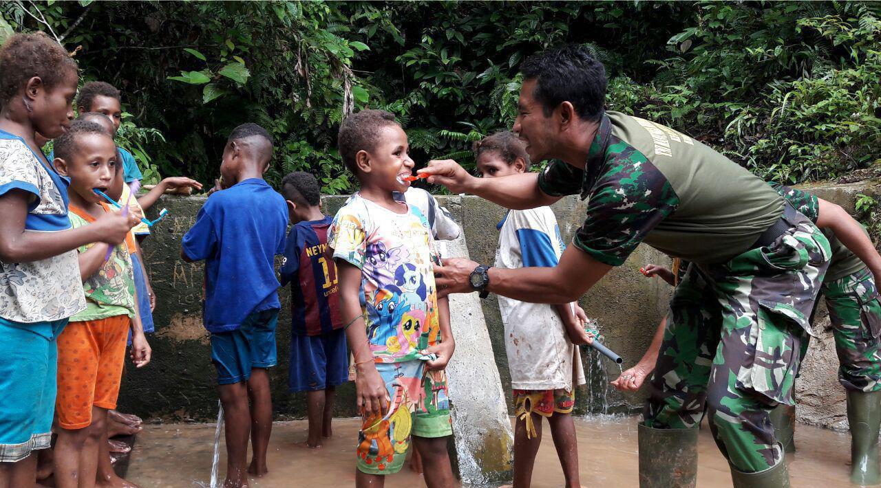 "Lho, pasta gigi kamu mana?" tanya Lettu Inf Warsito, salah satu Satgas TNI Manunggal Membangun Desa (TMMD), Kodim 1711/Boven Digul yang bertugas di kampung tersebut.