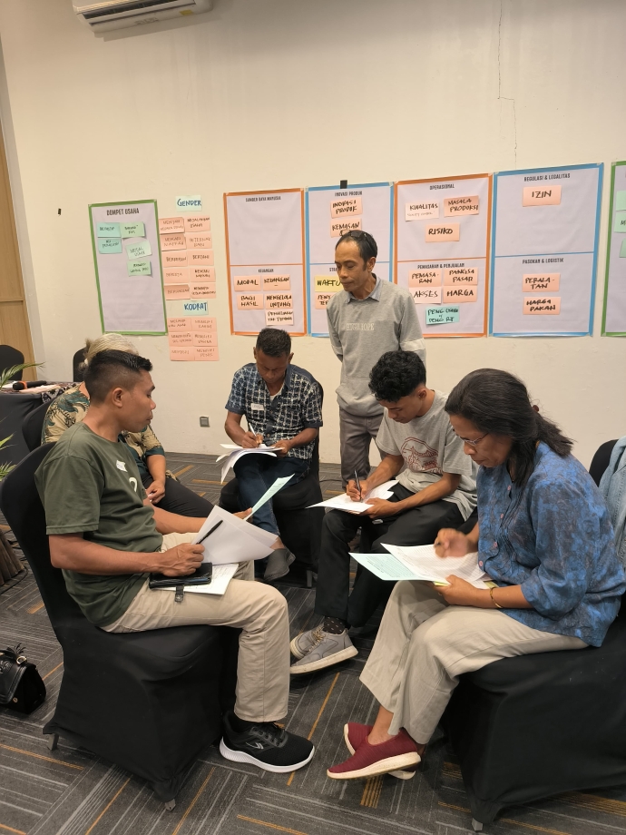 Adapun penguatan yang diberikan berupa pelatihan Pelatihan Pengelolaan Keuangan Bagi Pelaku Usaha bagi kelompok-kelompok usaha yang didampingi oleh Program INKLUSI di salah satu wilayah program yaitu Kabupaten Kupang, Provinsi Nusa Tenggara Timur. Kegiatan yang berlangsung pada 22-23 Juli 2024 di Hotel Neo Kupang ini diikuti oleh 16 peserta yang terdiri atas pengusaha dan kelompok pengusaha dan pemerintah desa. Pada pelatihan ini para peserta mengidentifikasi permasalahan yang dihadapi dalam usaha mereka serta, belajar memisahkan keuangan untuk usaha dan rumah tangga, juga belajar mengenai pembukuan usaha.