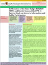 The findings of this research showed that access to public information and public participation in the deliberation process of RUU APBN conducted by the government and DPR are still very limited. The attention of the government and DPR regarding border areas, especially in women and other marginalized groups is limited. Information about the State Budget itself is difficult to obtain.